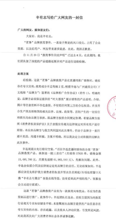 事情前前前后后发酵了一个月,才等来辛巴的道歉信。