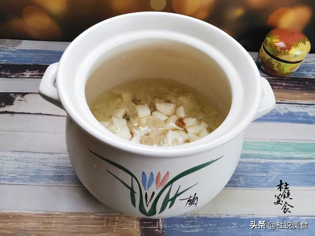 每年的初春时节,天气回暖、大地回春;同时,初春也是冷暖气流交汇频繁,天气骤冷骤热、乍暖还寒。这个时节虽然天气转暖,也是人们身体最容易出现问题的季节,最常见的问题就是气温忽冷忽热、变化无常所引起的肺部问题。春季易肺燥,难免会出现肺燥咳嗽、肺热痰瘀等情况出现。每年这个时节,总喜欢给家人熬这种羹汤喝,效果不错。这食材被称“平民燕窝”,搭配雪梨熬成羹,润肺燥,春天要常喝。这种羹汤便是银耳雪梨羹,选用了有“平民燕窝”之称的银耳搭配雪梨、话梅、枸杞子、冰糖,小火熬煮而成。