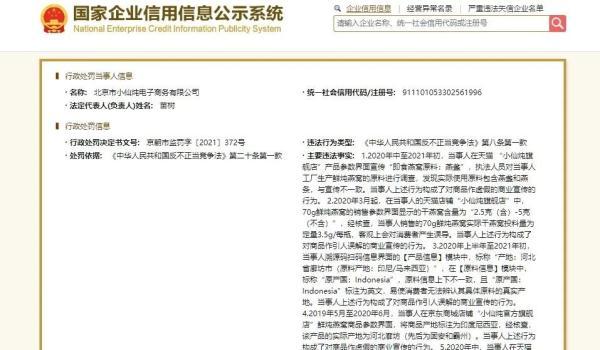 因“对商品作虚假或引人误解的商业宣传”“在广告中以引人误解或者虚假的内容欺骗、误导消费者”等违法行为,北京市小仙炖电子商务有限公司(以下称“小仙炖”)被北京市朝阳区市场监督管理局罚款20万元,监管部门责令其停止发布广告,并在相应范围内消除影响。据悉,2020年618期间小仙炖销售额突破2.45亿元,2020年双十一销售额达到了4.65亿元,同比实现463%和262%的暴涨。
