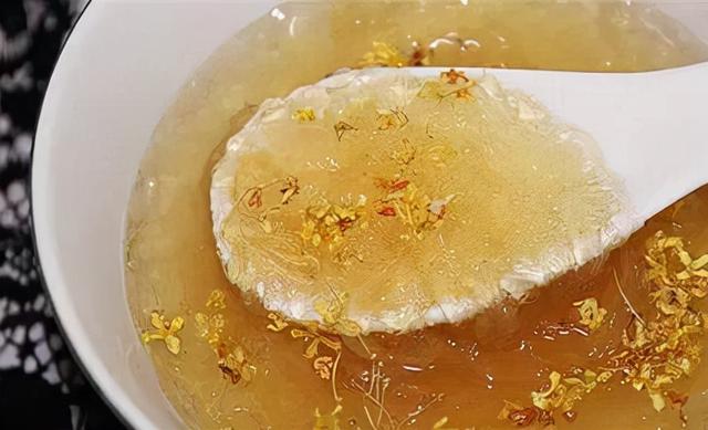 冰糖炖燕窝最后2分钟加入桂花。只需要少量的桂花即可,因桂花带有苦涩味。可以止咳,润肺,缓解精神压力,帮助睡眠。
