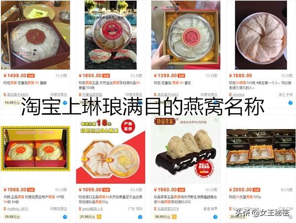 所以大家要透过现象看本质,就不会被各种名称忽悠。下图,淘宝上琳琅满目的各种燕窝名字。