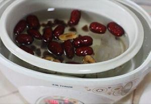4. 枣子再放入。然后放点矿泉水把倒入炖盅没过红枣即可。