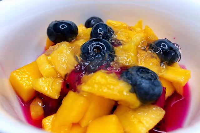 biubiubiu~这样一杯美味的水果牛奶燕窝烩就做好了
