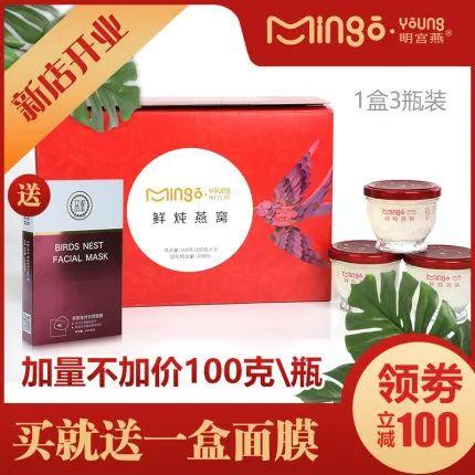 现逢明宫燕天猫店盛大开业,原价1800鲜炖燕窝,只要588!!只要588!!领卷立减100!!买就送一盒价值298的燕窝蚕丝驻颜面膜!限时限量,预约从速!