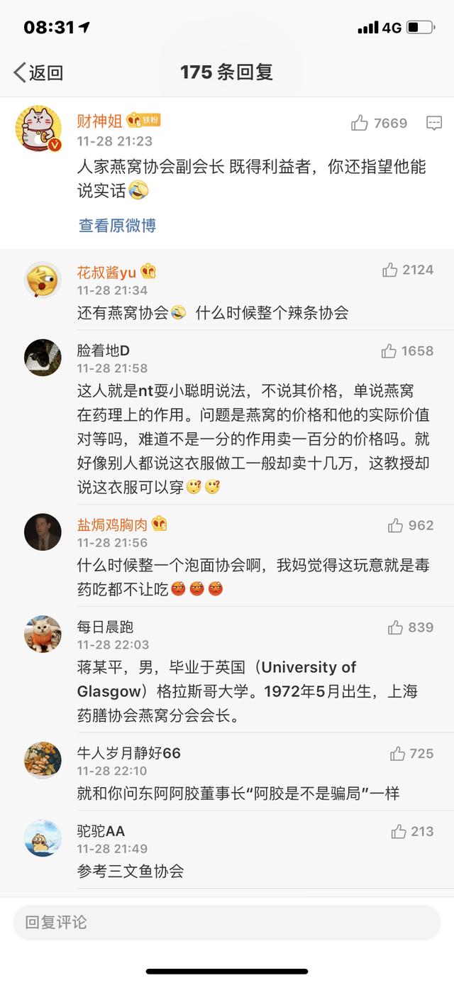 1 教授作为燕窝协会会长,是利益获得者,自然是向着燕窝说话