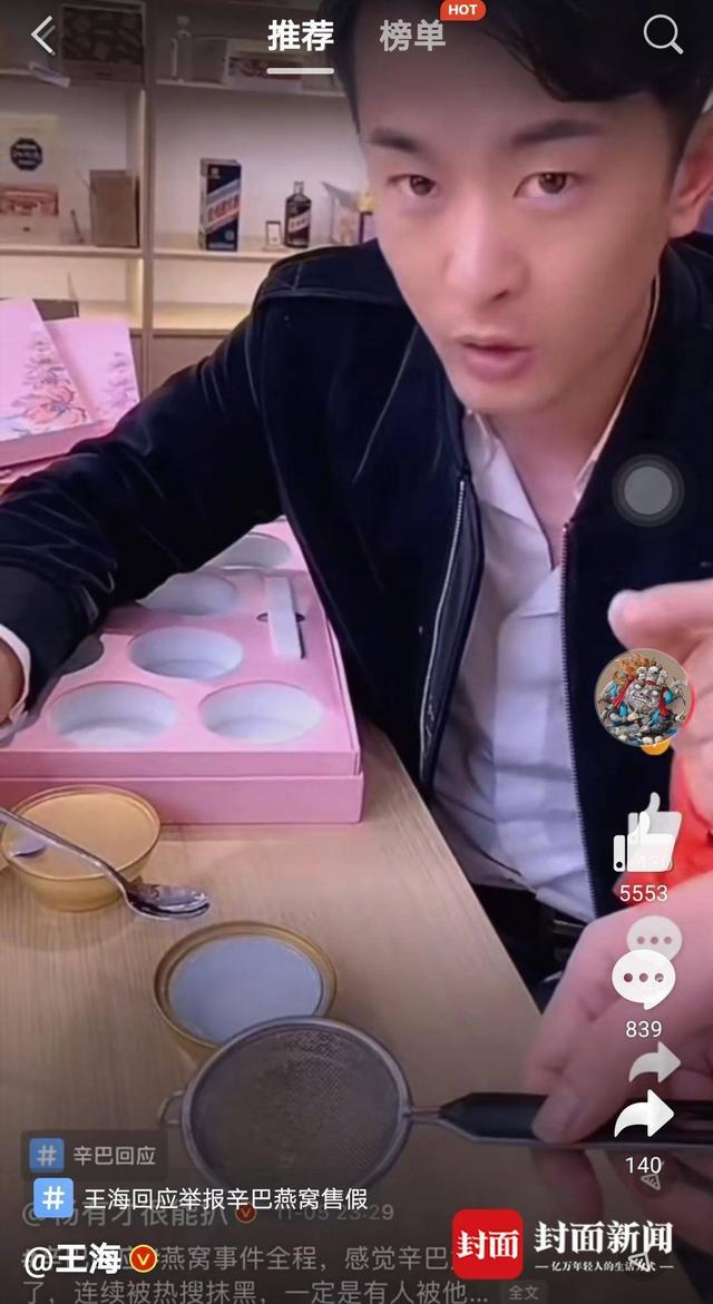 有称号“快手一哥”的主播“辛巴”(实名:辛有志)被指售卖燕窝为糖水一事,近日备受关注。“职业打假人”王海告诉红星新闻记者,长期以来他一直在关注燕窝骗局的相关事件。他注意到,一名消费者反映在辛巴直播间买到的燕窝实际上是糖水,并在网上发文称怀...
