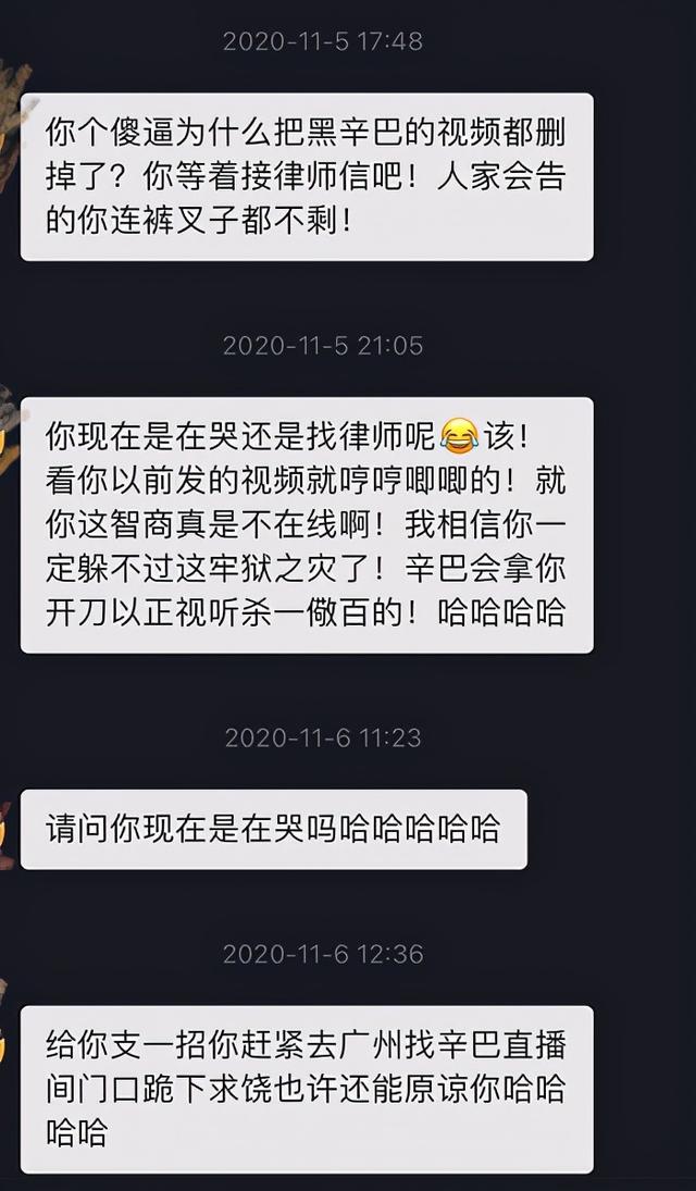 当事者迫于无奈,只能把视频都删除,然而辛巴的拥护者们反而认为她心虚,不但不愿意放过她,还变本加厉地辱骂她。