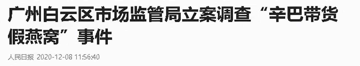 这两天,通过人民日报的官方账号获知,广州白云市场监督局已经对“辛巴带货假燕窝”这一件事情立案调查了。这样的一则消息发布出来,意味着辛巴和他的团队将迎来大麻烦了,也给还在直播带货的网红和明星们敲响了警钟!