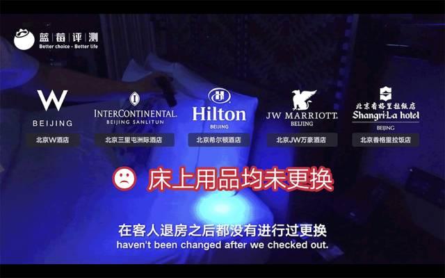 曝光北京W酒店、北京三里屯洲际酒店、北京希尔顿酒店、北京JW万豪酒店以及北京香格里拉饭店,均未在客房退房后彻底更换床品,马桶、浴缸、漱口杯、浴袍等物品也没做到完全清洁。