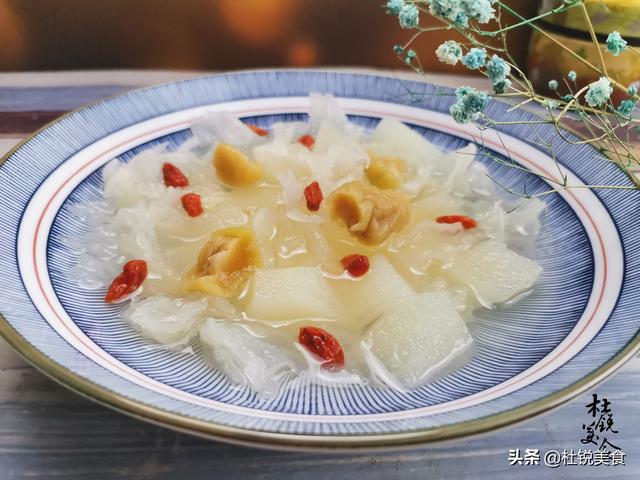 每年的初春时节,天气回暖、大地回春;同时,初春也是冷暖气流交汇频繁,天气骤冷骤热、乍暖还寒。这个时节虽然天气转暖,也是人们身体最容易出现问题的季节,最常见的问题就是气温忽冷忽热、变化无常所引起的肺部问题。春季易肺燥,难免会出现肺燥咳嗽、肺热痰瘀等情况出现。每年这个时节,总喜欢给家人熬这种羹汤喝,效果不错。这食材被称“平民燕窝”,搭配雪梨熬成羹,润肺燥,春天要常喝。这种羹汤便是银耳雪梨羹,选用了有“平民燕窝”之称的银耳搭配雪梨、话梅、枸杞子、冰糖,小火熬煮而成。