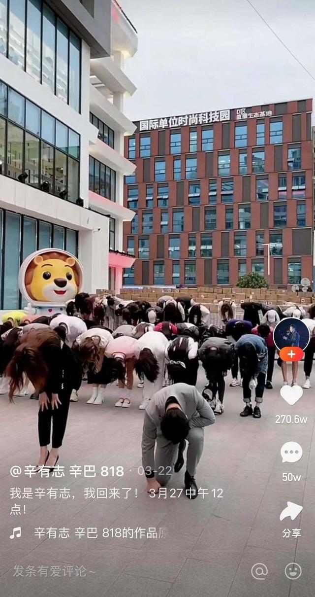 画面中,消失了几个月的辛巴团队集体站在公司门口宣布了回归的消息,说罢辛巴单膝跪下,团队则是深深鞠躬。为给此次回归造势,辛巴宣布要在直播间送出 5 万台 1 折手机。