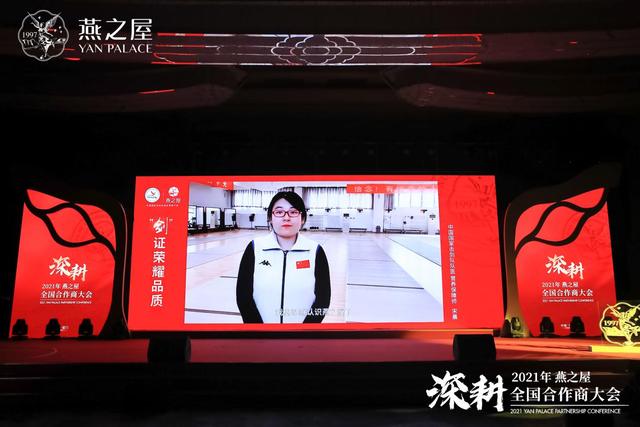 大会当天,中国国家击剑队正在国外参加奥运会资格赛,无法来到现场,他们通过视频为“深耕”2021年全国合作商大会送上祝福,并由中国国家击剑协会赠送燕之屋荣耀金剑,“剑”证荣耀品质。