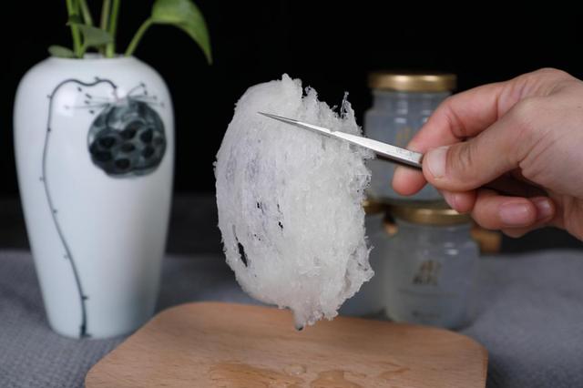 首先将干燕窝在常温水中泡发,大约需要4小时,泡发后进行人工挑毛,之后顺着纹理撕开,放入锅中,隔水炖1-2小时即可,炖完后会有一股浓郁的蛋白清香扑鼻而来,加入冰糖、枸杞和红枣即可食用。