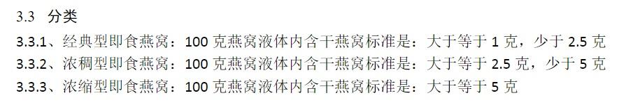 如果要按照即食燕窝的那个团体标准,里面应该含有多少干燕窝呢?