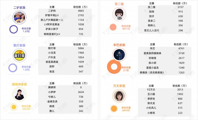通过家族人员的搭建,快手的头部主播之间,形成了高度密切的利益共同体。